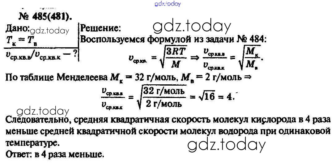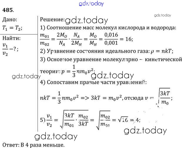 На страницах сайта gdz.today вы найдете учебный и вспомогательный материал, направленный на улучшения знаний школьной программы. ГДЗ - онлайн мир знаний Задачи 485 Задачнику по Физике для 10-11 класса Рымкевич Дрофа УМК 2013