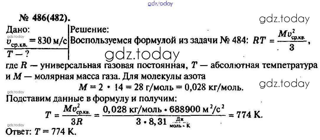 На страницах сайта gdz.today вы найдете учебный и вспомогательный материал, направленный на улучшения знаний школьной программы. ГДЗ - онлайн мир знаний Задачи 486 Задачнику по Физике для 10-11 класса Рымкевич Дрофа УМК 2013