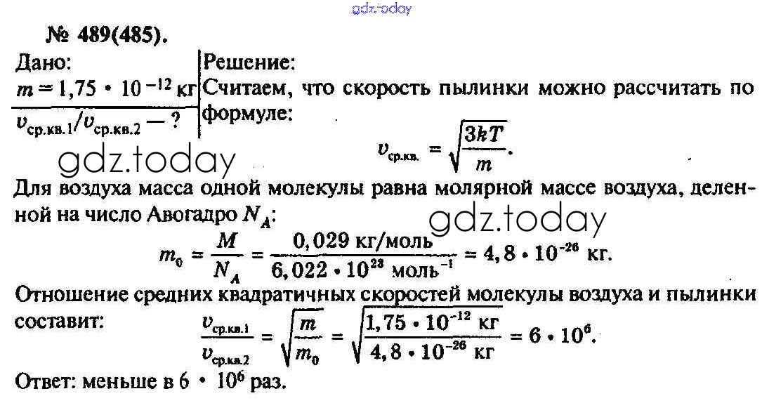 На страницах сайта gdz.today вы найдете учебный и вспомогательный материал, направленный на улучшения знаний школьной программы. ГДЗ - онлайн мир знаний Задачи 489 Задачнику по Физике для 10-11 класса Рымкевич Дрофа УМК 2013