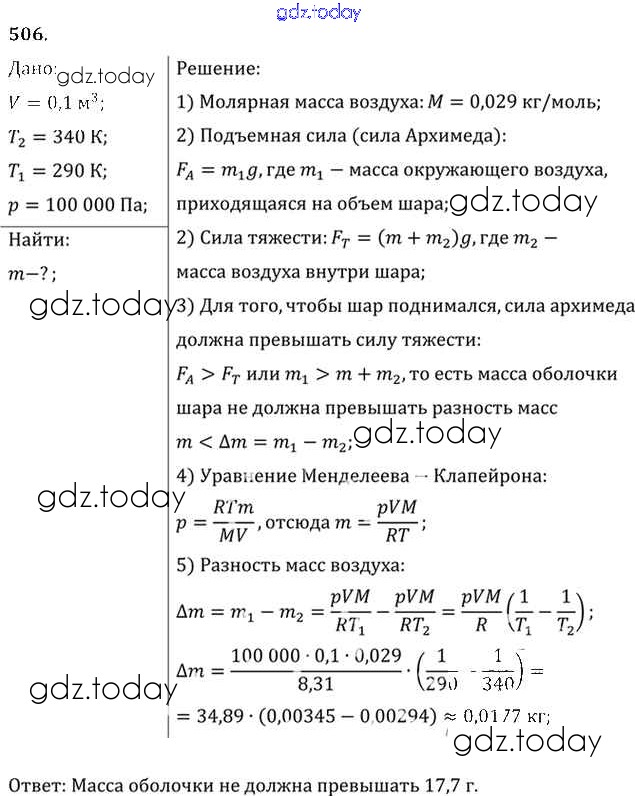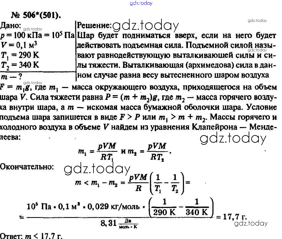 На страницах сайта gdz.today вы найдете учебный и вспомогательный материал, направленный на улучшения знаний школьной программы. ГДЗ - онлайн мир знаний Задачи 506 Задачнику по Физике для 10-11 класса Рымкевич Дрофа УМК 2013
