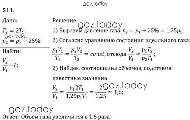 На страницах сайта gdz.today вы найдете учебный и вспомогательный материал, направленный на улучшения знаний школьной программы. ГДЗ - онлайн мир знаний Задачи 511 Задачнику по Физике для 10-11 класса Рымкевич Дрофа УМК 2013