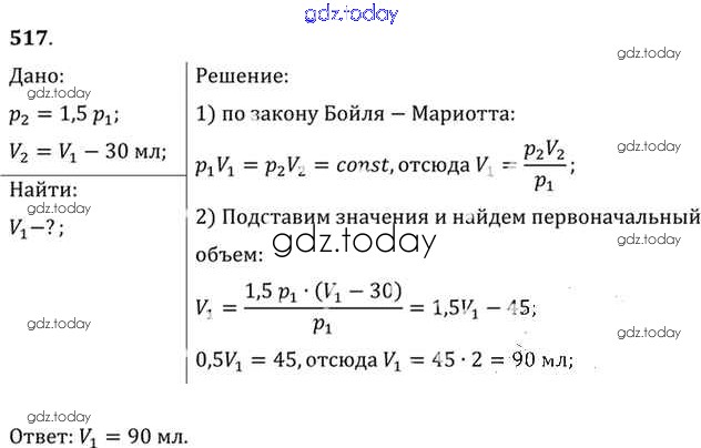 На страницах сайта gdz.today вы найдете учебный и вспомогательный материал, направленный на улучшения знаний школьной программы. ГДЗ - онлайн мир знаний Задачи 517 Задачнику по Физике для 10-11 класса Рымкевич Дрофа УМК 2013