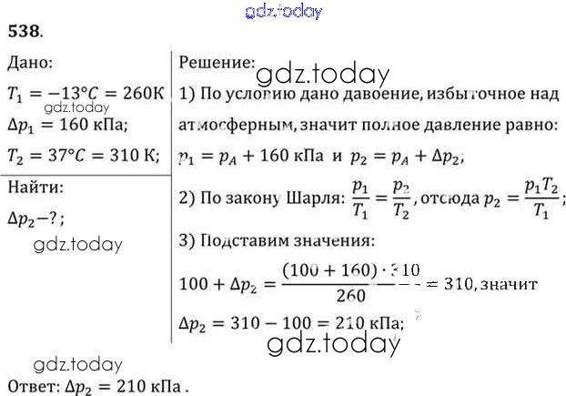 На страницах сайта gdz.today вы найдете учебный и вспомогательный материал, направленный на улучшения знаний школьной программы. ГДЗ - онлайн мир знаний Задачи 538 Задачнику по Физике для 10-11 класса Рымкевич Дрофа УМК 2013
