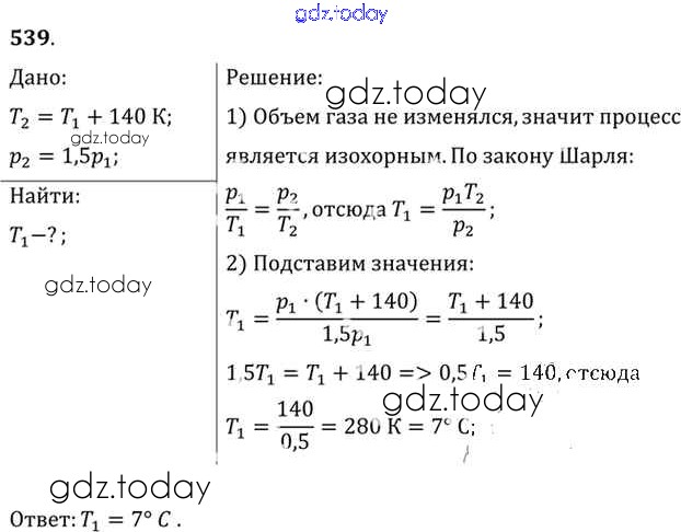На страницах сайта gdz.today вы найдете учебный и вспомогательный материал, направленный на улучшения знаний школьной программы. ГДЗ - онлайн мир знаний Задачи 539 Задачнику по Физике для 10-11 класса Рымкевич Дрофа УМК 2013