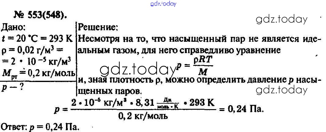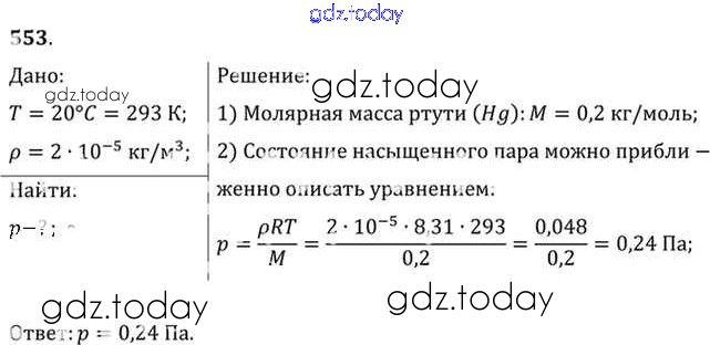 На страницах сайта gdz.today вы найдете учебный и вспомогательный материал, направленный на улучшения знаний школьной программы. ГДЗ - онлайн мир знаний Задачи 553 Задачнику по Физике для 10-11 класса Рымкевич Дрофа УМК 2013