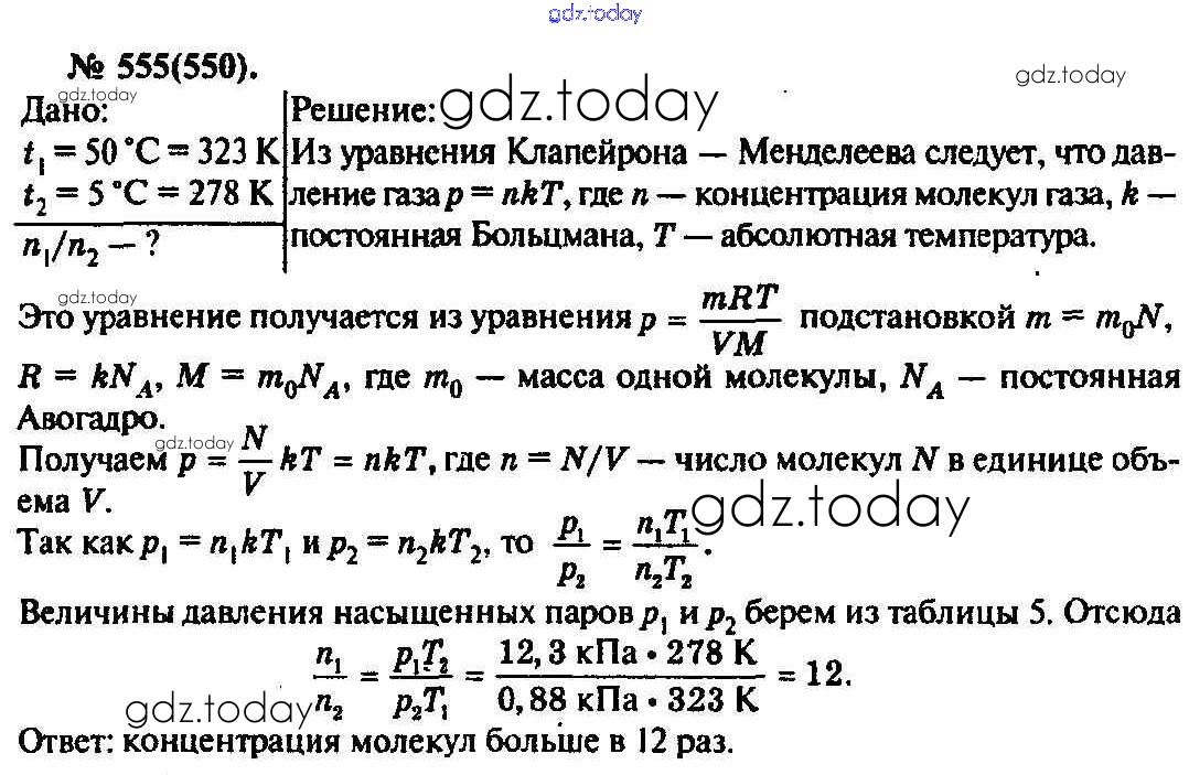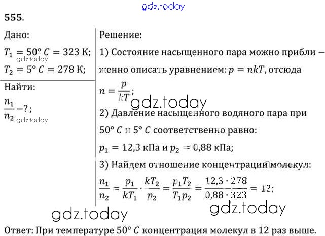 На страницах сайта gdz.today вы найдете учебный и вспомогательный материал, направленный на улучшения знаний школьной программы. ГДЗ - онлайн мир знаний Задачи 555 Задачнику по Физике для 10-11 класса Рымкевич Дрофа УМК 2013