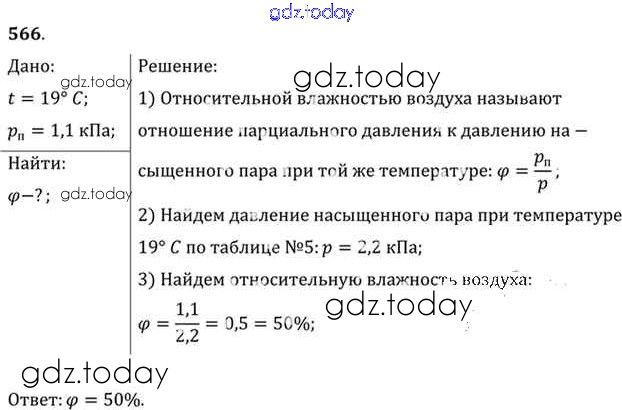 На страницах сайта gdz.today вы найдете учебный и вспомогательный материал, направленный на улучшения знаний школьной программы. ГДЗ - онлайн мир знаний Задачи 566 Задачнику по Физике для 10-11 класса Рымкевич Дрофа УМК 2013