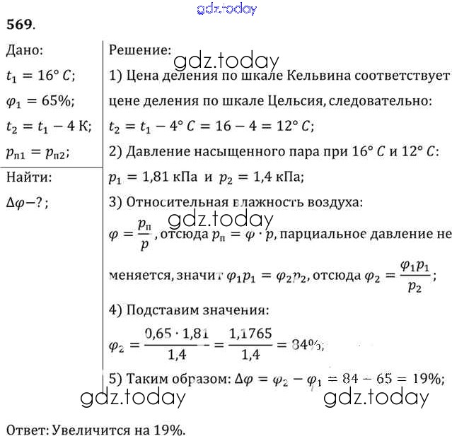 На страницах сайта gdz.today вы найдете учебный и вспомогательный материал, направленный на улучшения знаний школьной программы. ГДЗ - онлайн мир знаний Задачи 569 Задачнику по Физике для 10-11 класса Рымкевич Дрофа УМК 2013