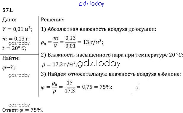На страницах сайта gdz.today вы найдете учебный и вспомогательный материал, направленный на улучшения знаний школьной программы. ГДЗ - онлайн мир знаний Задачи 571 Задачнику по Физике для 10-11 класса Рымкевич Дрофа УМК 2013