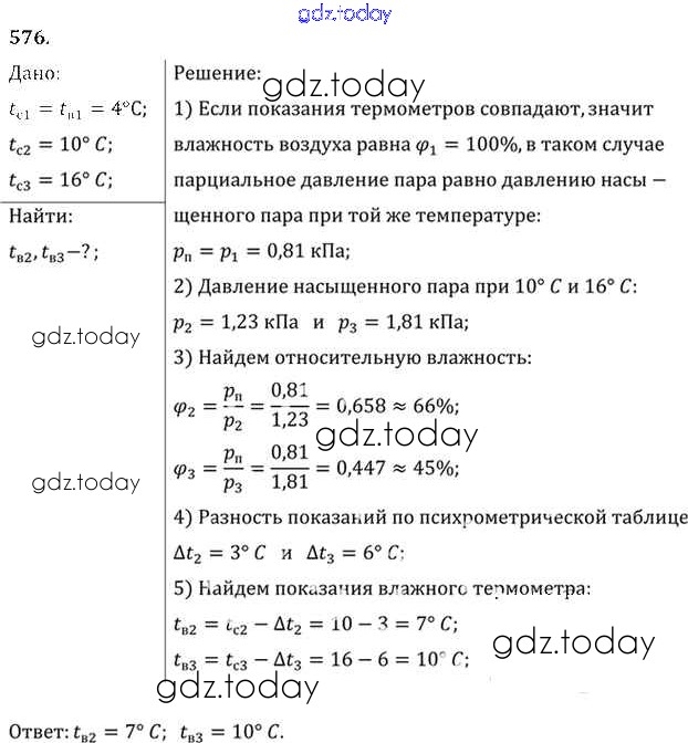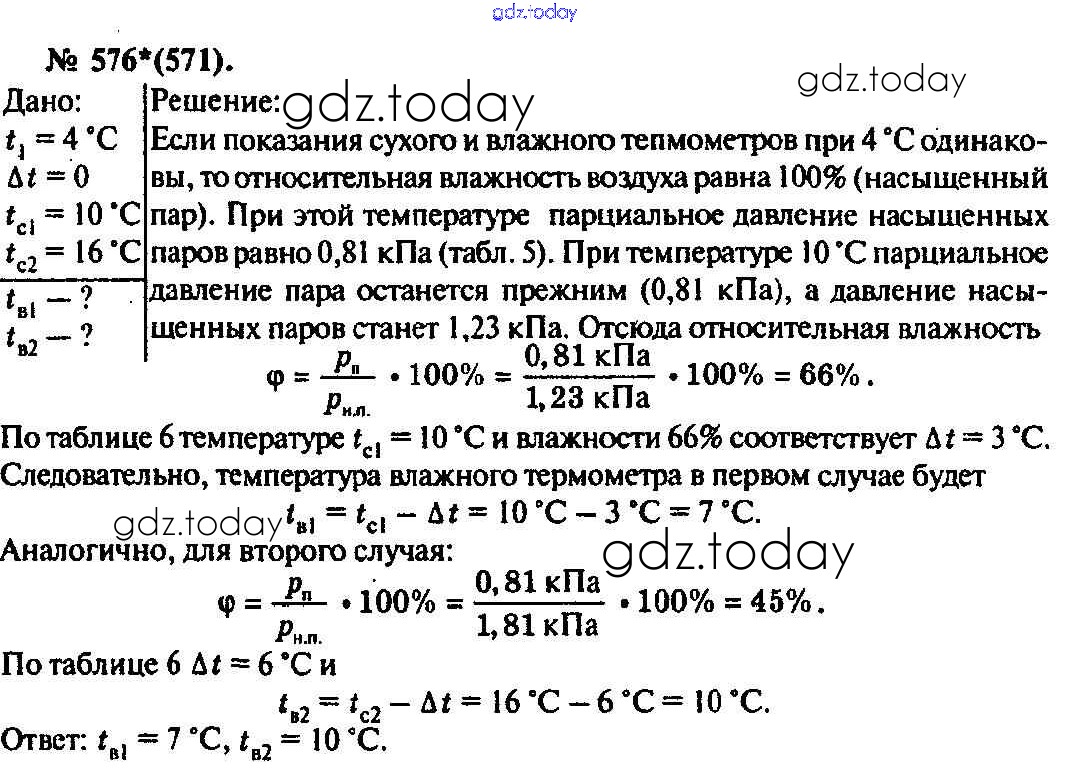 На страницах сайта gdz.today вы найдете учебный и вспомогательный материал, направленный на улучшения знаний школьной программы. ГДЗ - онлайн мир знаний Задачи 576 Задачнику по Физике для 10-11 класса Рымкевич Дрофа УМК 2013