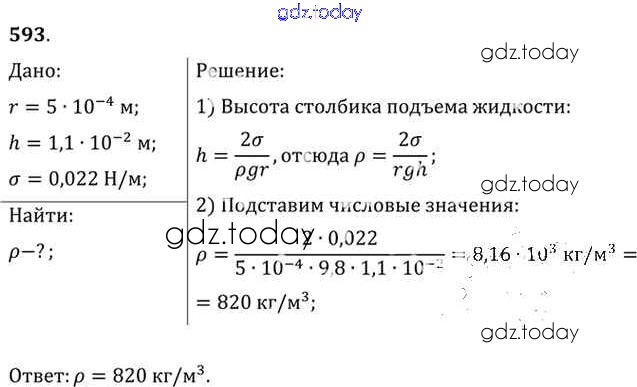 На страницах сайта gdz.today вы найдете учебный и вспомогательный материал, направленный на улучшения знаний школьной программы. ГДЗ - онлайн мир знаний Задачи 593 Задачнику по Физике для 10-11 класса Рымкевич Дрофа УМК 2013