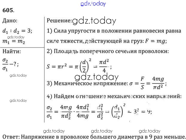 На страницах сайта gdz.today вы найдете учебный и вспомогательный материал, направленный на улучшения знаний школьной программы. ГДЗ - онлайн мир знаний Задачи 605 Задачнику по Физике для 10-11 класса Рымкевич Дрофа УМК 2013