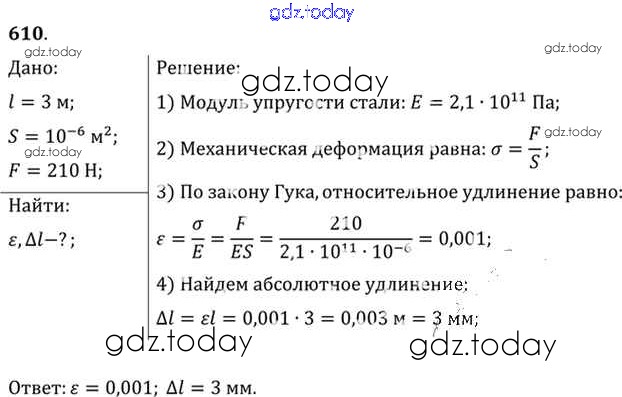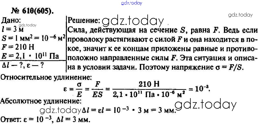 На страницах сайта gdz.today вы найдете учебный и вспомогательный материал, направленный на улучшения знаний школьной программы. ГДЗ - онлайн мир знаний Задачи 610 Задачнику по Физике для 10-11 класса Рымкевич Дрофа УМК 2013