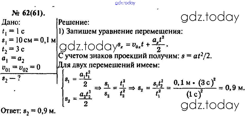 На страницах сайта gdz.today вы найдете учебный и вспомогательный материал, направленный на улучшения знаний школьной программы. ГДЗ - онлайн мир знаний Задачи 62 Задачнику по Физике для 10-11 класса Рымкевич Дрофа УМК 2013