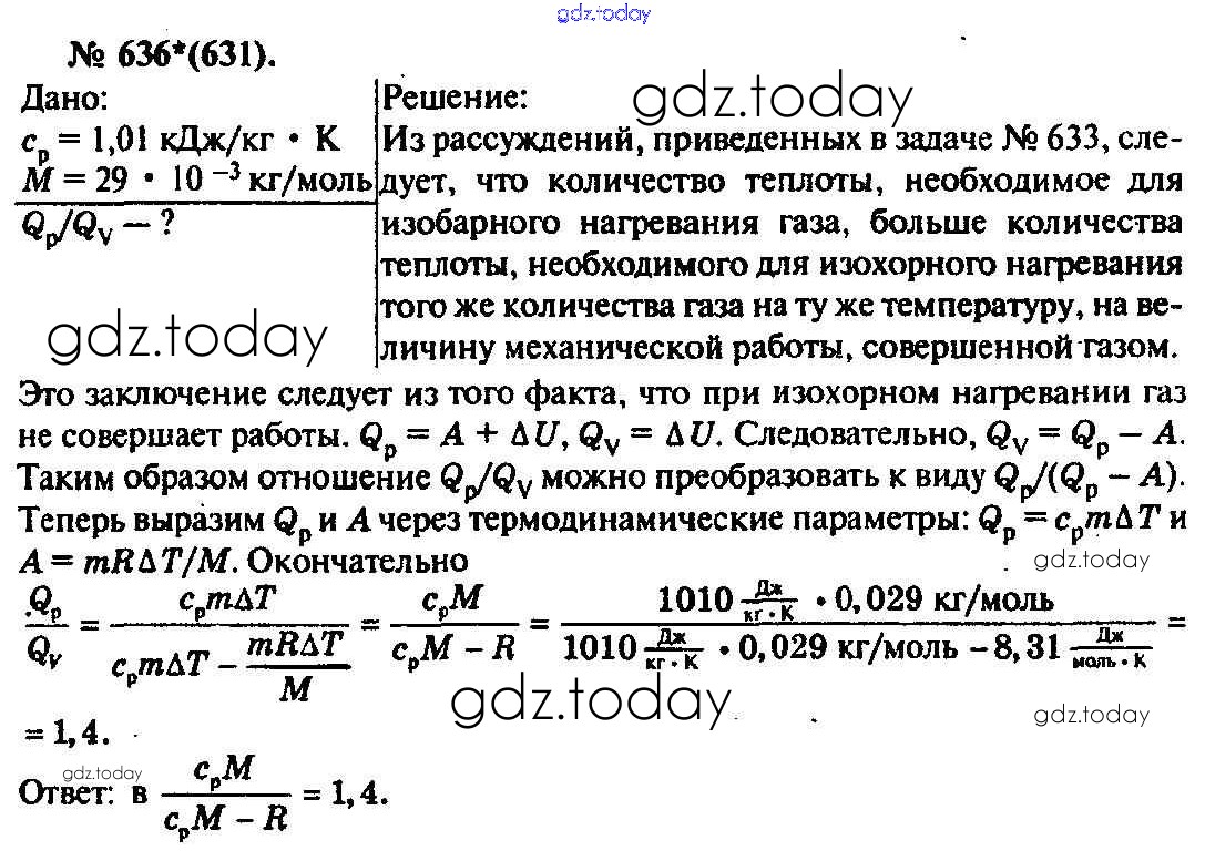 На страницах сайта gdz.today вы найдете учебный и вспомогательный материал, направленный на улучшения знаний школьной программы. ГДЗ - онлайн мир знаний Задачи 636 Задачнику по Физике для 10-11 класса Рымкевич Дрофа УМК 2013