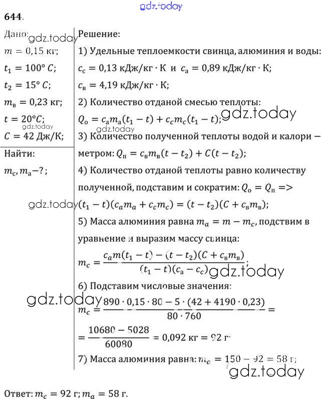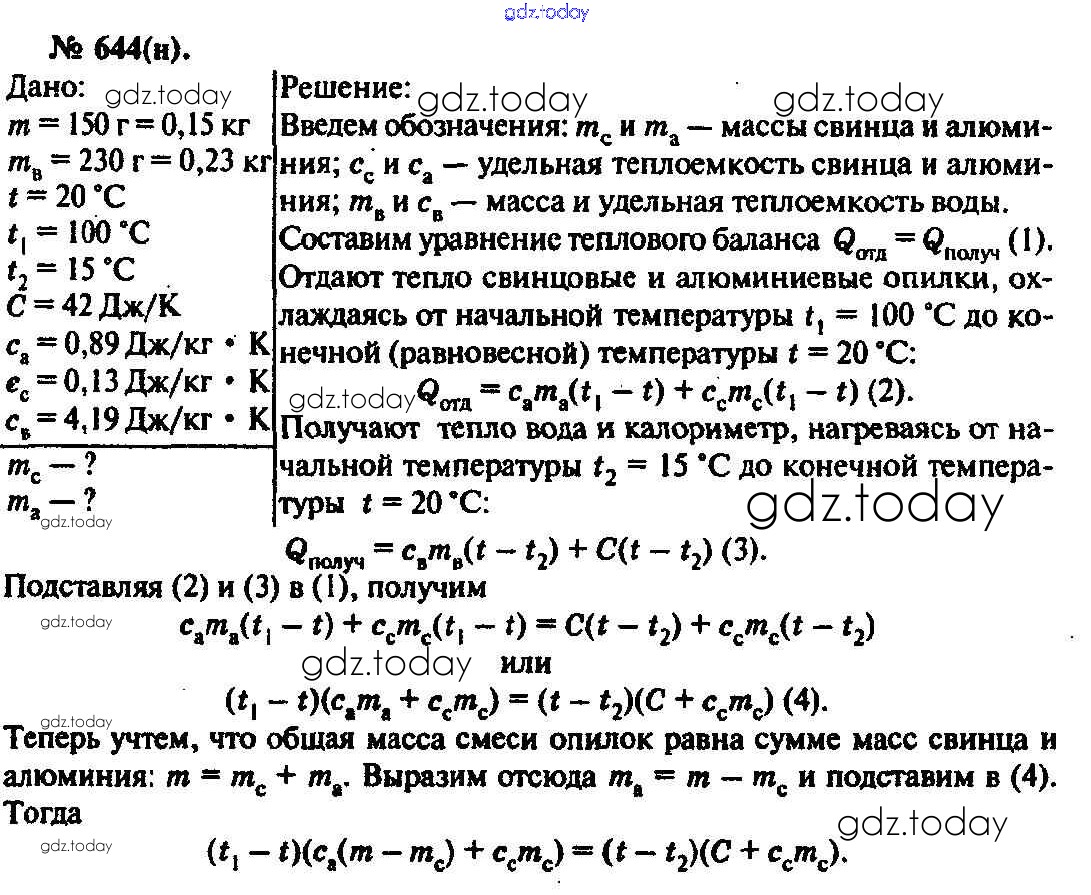 На страницах сайта gdz.today вы найдете учебный и вспомогательный материал, направленный на улучшения знаний школьной программы. ГДЗ - онлайн мир знаний Задачи 644 Задачнику по Физике для 10-11 класса Рымкевич Дрофа УМК 2013