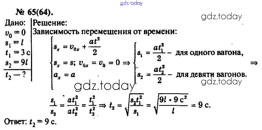 На страницах сайта gdz.today вы найдете учебный и вспомогательный материал, направленный на улучшения знаний школьной программы. ГДЗ - онлайн мир знаний Задачи 65 Задачнику по Физике для 10-11 класса Рымкевич Дрофа УМК 2013