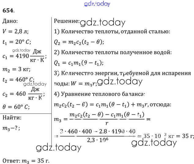 На страницах сайта gdz.today вы найдете учебный и вспомогательный материал, направленный на улучшения знаний школьной программы. ГДЗ - онлайн мир знаний Задачи 654 Задачнику по Физике для 10-11 класса Рымкевич Дрофа УМК 2013