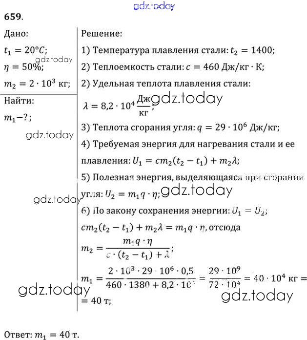 Ответы к Задачи 659 Задачнику по Физике для 10-11 класса Рымкевич Дрофа УМК 2013
