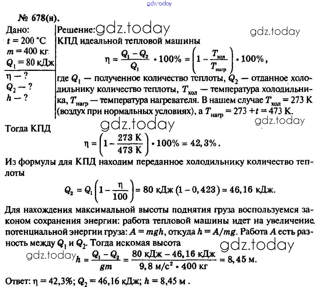 На страницах сайта gdz.today вы найдете учебный и вспомогательный материал, направленный на улучшения знаний школьной программы. ГДЗ - онлайн мир знаний Задачи 678 Задачнику по Физике для 10-11 класса Рымкевич Дрофа УМК 2013