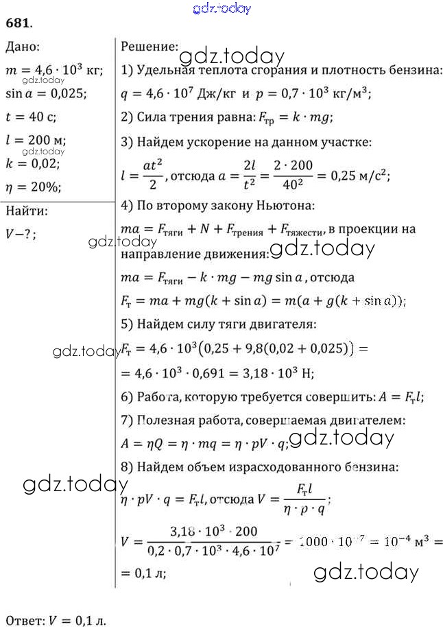 На страницах сайта gdz.today вы найдете учебный и вспомогательный материал, направленный на улучшения знаний школьной программы. ГДЗ - онлайн мир знаний Задачи 681 Задачнику по Физике для 10-11 класса Рымкевич Дрофа УМК 2013