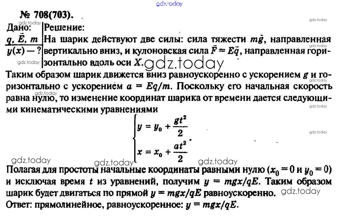 На страницах сайта gdz.today вы найдете учебный и вспомогательный материал, направленный на улучшения знаний школьной программы. ГДЗ - онлайн мир знаний Задачи 708 Задачнику по Физике для 10-11 класса Рымкевич Дрофа УМК 2013