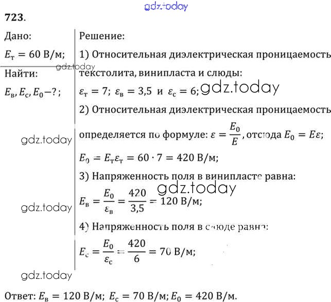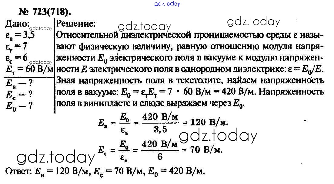 На страницах сайта gdz.today вы найдете учебный и вспомогательный материал, направленный на улучшения знаний школьной программы. ГДЗ - онлайн мир знаний Задачи 723 Задачнику по Физике для 10-11 класса Рымкевич Дрофа УМК 2013