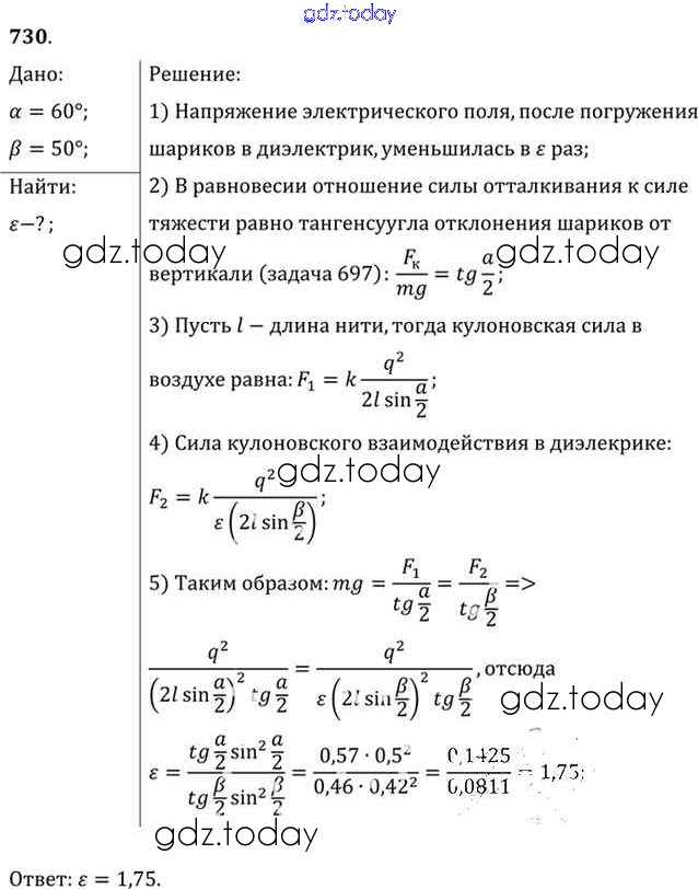 На страницах сайта gdz.today вы найдете учебный и вспомогательный материал, направленный на улучшения знаний школьной программы. ГДЗ - онлайн мир знаний Задачи 730 Задачнику по Физике для 10-11 класса Рымкевич Дрофа УМК 2013