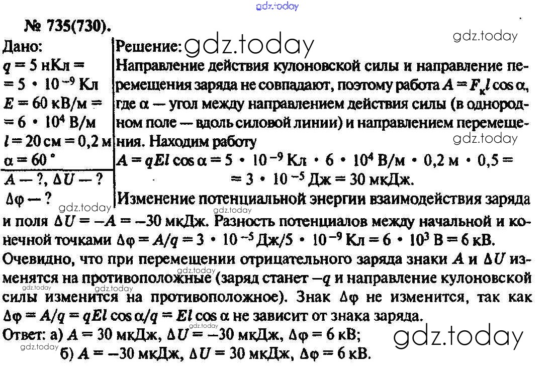На страницах сайта gdz.today вы найдете учебный и вспомогательный материал, направленный на улучшения знаний школьной программы. ГДЗ - онлайн мир знаний Задачи 735 Задачнику по Физике для 10-11 класса Рымкевич Дрофа УМК 2013