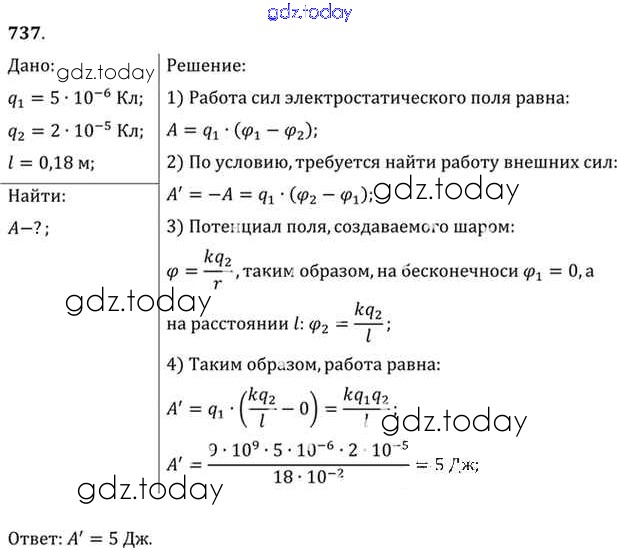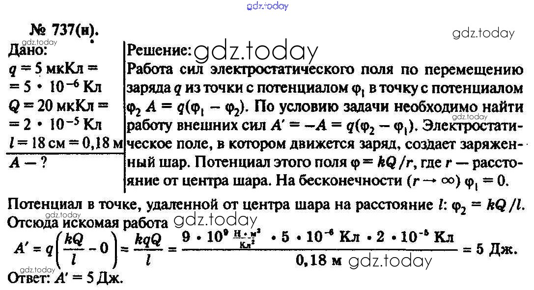 На страницах сайта gdz.today вы найдете учебный и вспомогательный материал, направленный на улучшения знаний школьной программы. ГДЗ - онлайн мир знаний Задачи 737 Задачнику по Физике для 10-11 класса Рымкевич Дрофа УМК 2013