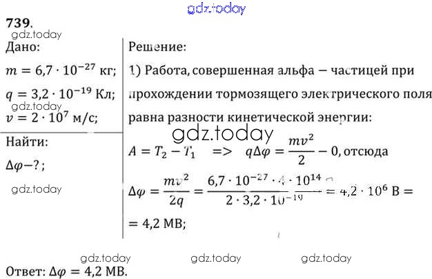 Ответы к Задачи 739 Задачнику по Физике для 10-11 класса Рымкевич Дрофа УМК 2013