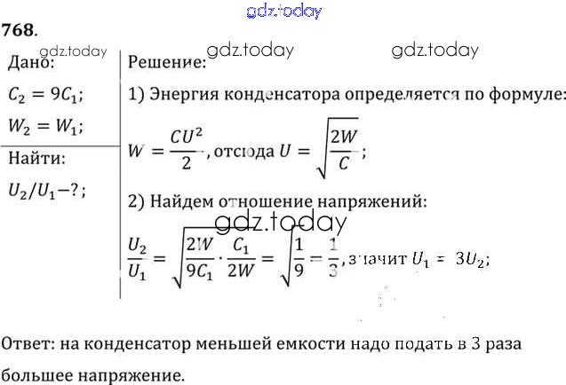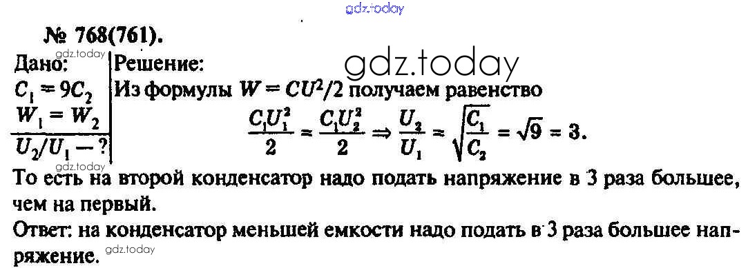 На страницах сайта gdz.today вы найдете учебный и вспомогательный материал, направленный на улучшения знаний школьной программы. ГДЗ - онлайн мир знаний Задачи 768 Задачнику по Физике для 10-11 класса Рымкевич Дрофа УМК 2013