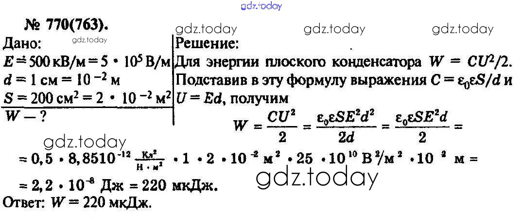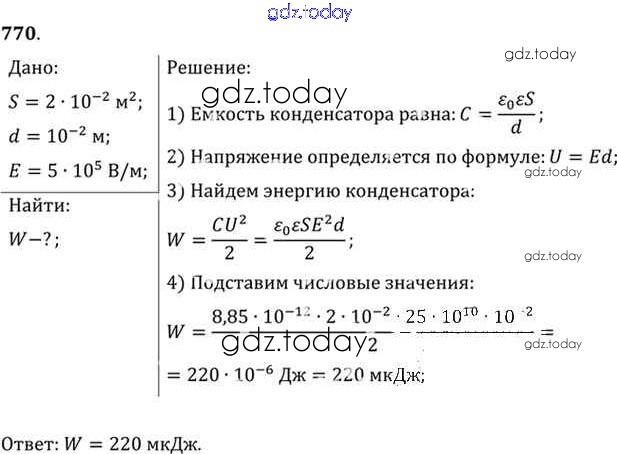 На страницах сайта gdz.today вы найдете учебный и вспомогательный материал, направленный на улучшения знаний школьной программы. ГДЗ - онлайн мир знаний Задачи 770 Задачнику по Физике для 10-11 класса Рымкевич Дрофа УМК 2013