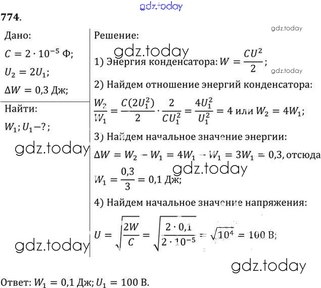 На страницах сайта gdz.today вы найдете учебный и вспомогательный материал, направленный на улучшения знаний школьной программы. ГДЗ - онлайн мир знаний Задачи 774 Задачнику по Физике для 10-11 класса Рымкевич Дрофа УМК 2013