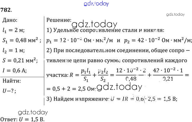 На страницах сайта gdz.today вы найдете учебный и вспомогательный материал, направленный на улучшения знаний школьной программы. ГДЗ - онлайн мир знаний Задачи 782 Задачнику по Физике для 10-11 класса Рымкевич Дрофа УМК 2013