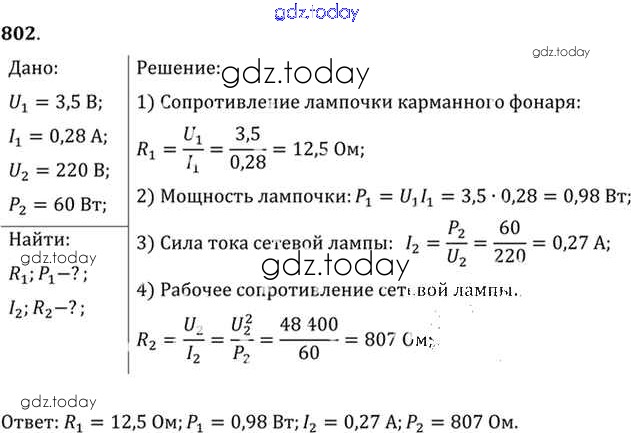На страницах сайта gdz.today вы найдете учебный и вспомогательный материал, направленный на улучшения знаний школьной программы. ГДЗ - онлайн мир знаний Задачи 802 Задачнику по Физике для 10-11 класса Рымкевич Дрофа УМК 2013