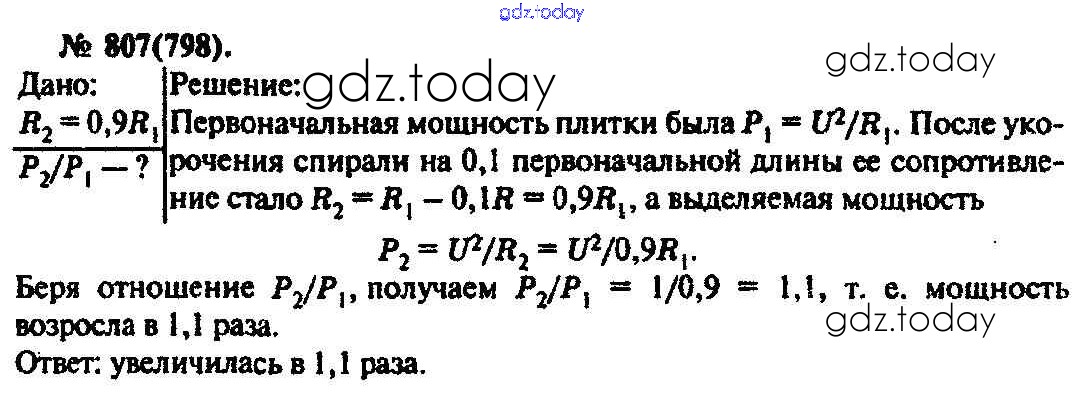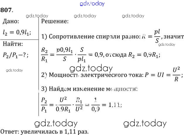 На страницах сайта gdz.today вы найдете учебный и вспомогательный материал, направленный на улучшения знаний школьной программы. ГДЗ - онлайн мир знаний Задачи 807 Задачнику по Физике для 10-11 класса Рымкевич Дрофа УМК 2013