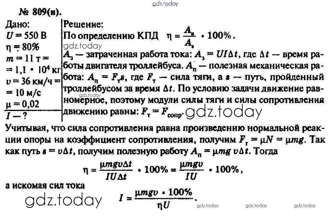 На страницах сайта gdz.today вы найдете учебный и вспомогательный материал, направленный на улучшения знаний школьной программы. ГДЗ - онлайн мир знаний Задачи 809 Задачнику по Физике для 10-11 класса Рымкевич Дрофа УМК 2013