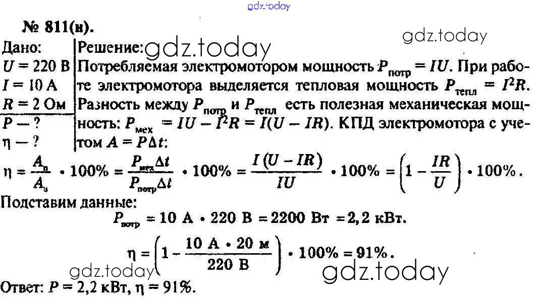 На страницах сайта gdz.today вы найдете учебный и вспомогательный материал, направленный на улучшения знаний школьной программы. ГДЗ - онлайн мир знаний Задачи 811 Задачнику по Физике для 10-11 класса Рымкевич Дрофа УМК 2013