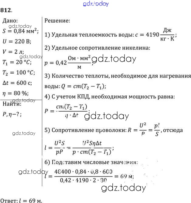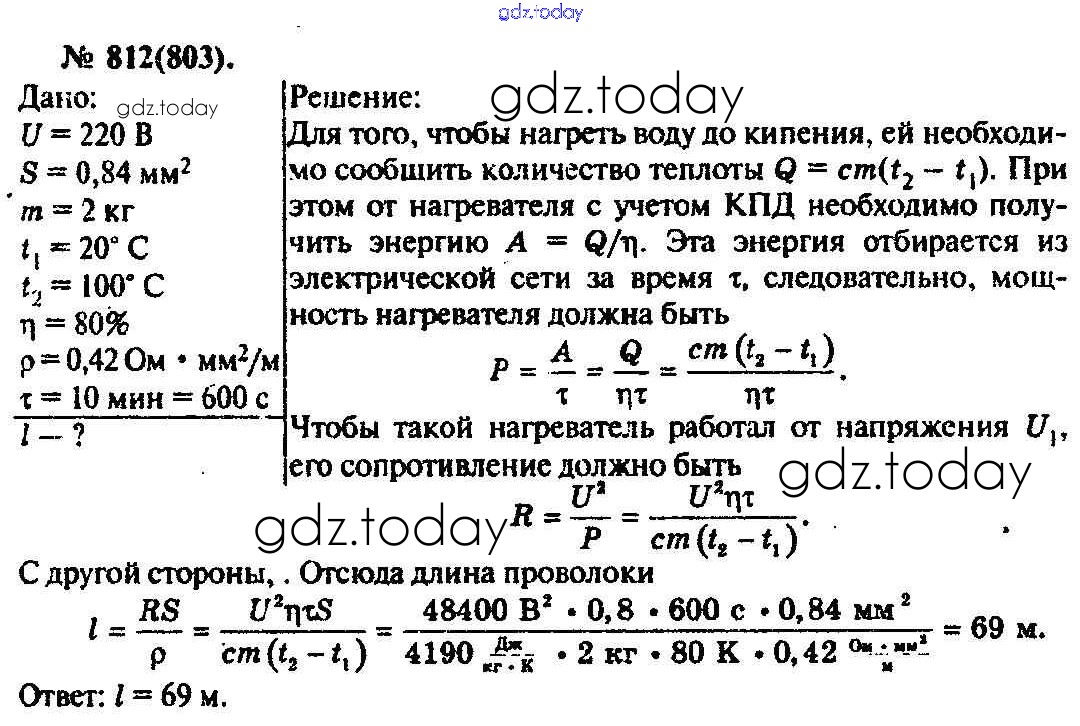 На страницах сайта gdz.today вы найдете учебный и вспомогательный материал, направленный на улучшения знаний школьной программы. ГДЗ - онлайн мир знаний Задачи 812 Задачнику по Физике для 10-11 класса Рымкевич Дрофа УМК 2013