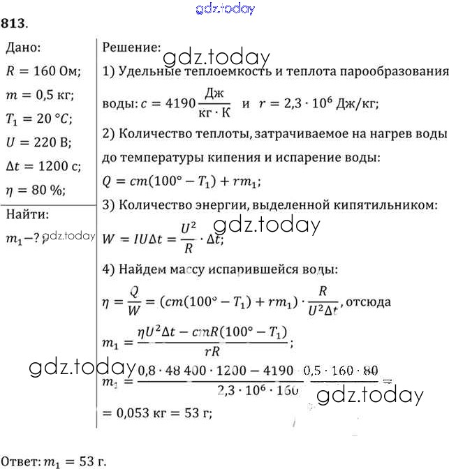 На страницах сайта gdz.today вы найдете учебный и вспомогательный материал, направленный на улучшения знаний школьной программы. ГДЗ - онлайн мир знаний Задачи 813 Задачнику по Физике для 10-11 класса Рымкевич Дрофа УМК 2013