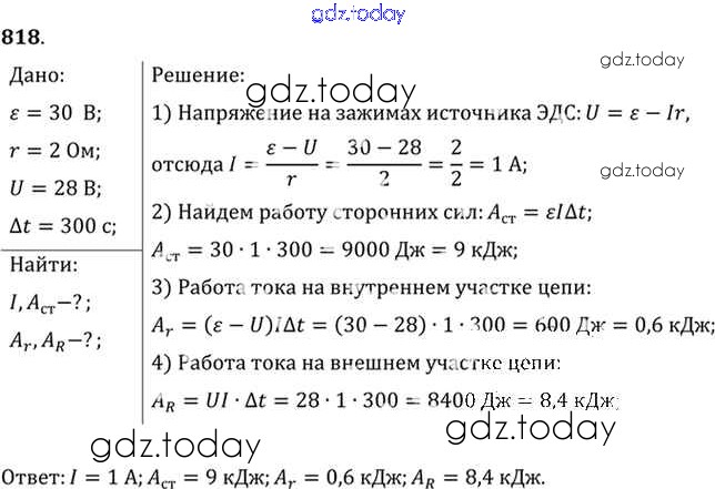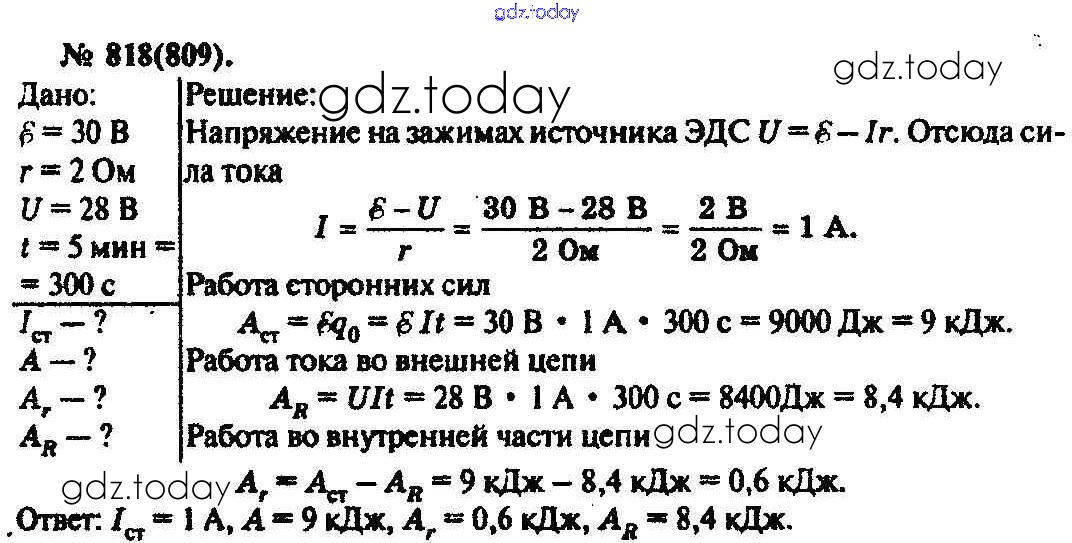 На страницах сайта gdz.today вы найдете учебный и вспомогательный материал, направленный на улучшения знаний школьной программы. ГДЗ - онлайн мир знаний Задачи 818 Задачнику по Физике для 10-11 класса Рымкевич Дрофа УМК 2013