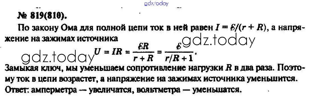 На страницах сайта gdz.today вы найдете учебный и вспомогательный материал, направленный на улучшения знаний школьной программы. ГДЗ - онлайн мир знаний Задачи 819 Задачнику по Физике для 10-11 класса Рымкевич Дрофа УМК 2013