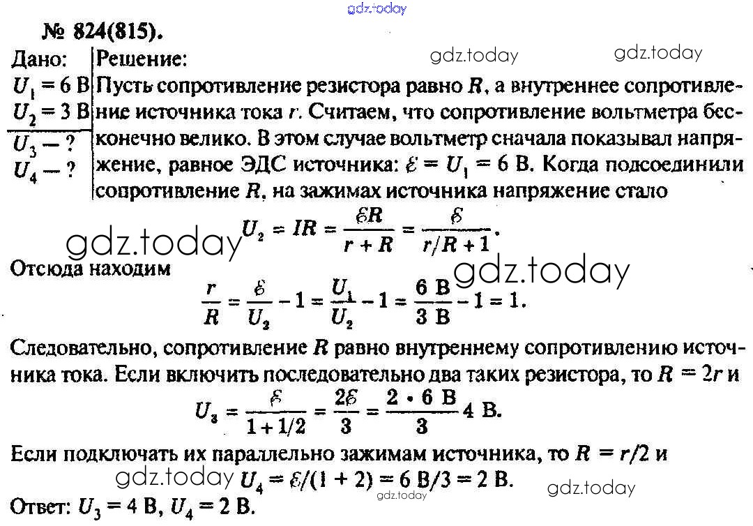 На страницах сайта gdz.today вы найдете учебный и вспомогательный материал, направленный на улучшения знаний школьной программы. ГДЗ - онлайн мир знаний Задачи 824 Задачнику по Физике для 10-11 класса Рымкевич Дрофа УМК 2013