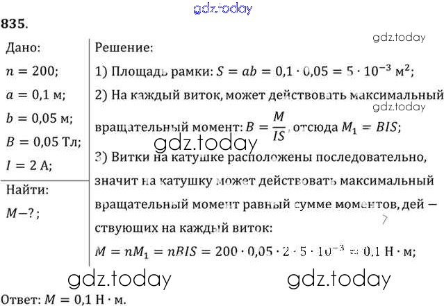 На страницах сайта gdz.today вы найдете учебный и вспомогательный материал, направленный на улучшения знаний школьной программы. ГДЗ - онлайн мир знаний Задачи 835 Задачнику по Физике для 10-11 класса Рымкевич Дрофа УМК 2013
