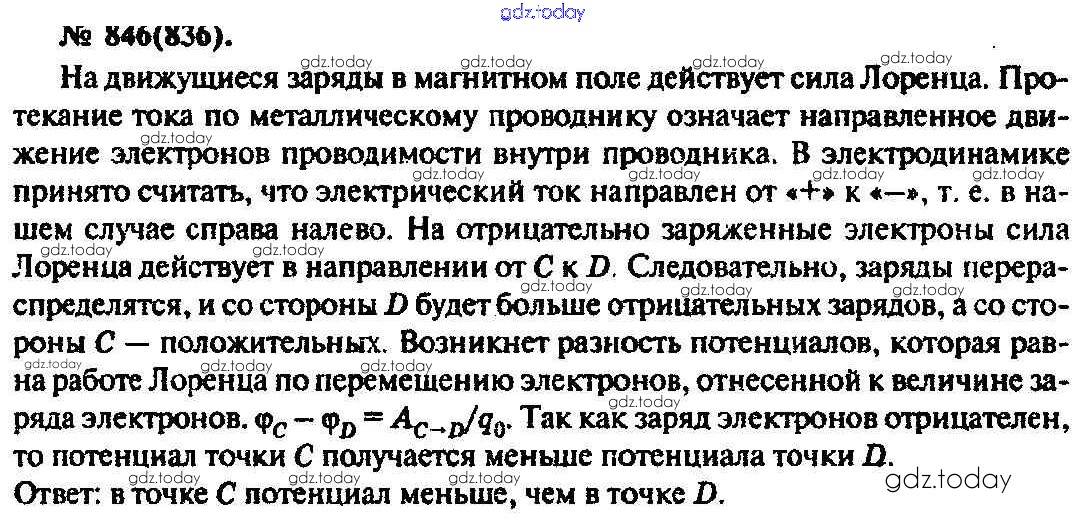 На страницах сайта gdz.today вы найдете учебный и вспомогательный материал, направленный на улучшения знаний школьной программы. ГДЗ - онлайн мир знаний Задачи 846 Задачнику по Физике для 10-11 класса Рымкевич Дрофа УМК 2013