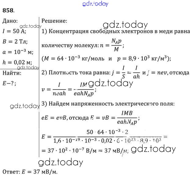 На страницах сайта gdz.today вы найдете учебный и вспомогательный материал, направленный на улучшения знаний школьной программы. ГДЗ - онлайн мир знаний Задачи 858 Задачнику по Физике для 10-11 класса Рымкевич Дрофа УМК 2013
