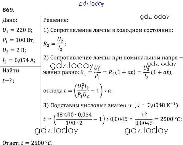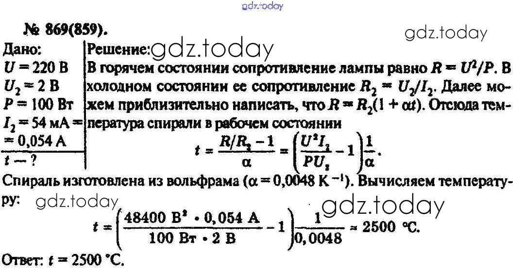 На страницах сайта gdz.today вы найдете учебный и вспомогательный материал, направленный на улучшения знаний школьной программы. ГДЗ - онлайн мир знаний Задачи 869 Задачнику по Физике для 10-11 класса Рымкевич Дрофа УМК 2013