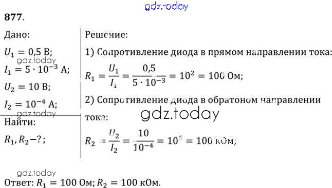 На страницах сайта gdz.today вы найдете учебный и вспомогательный материал, направленный на улучшения знаний школьной программы. ГДЗ - онлайн мир знаний Задачи 877 Задачнику по Физике для 10-11 класса Рымкевич Дрофа УМК 2013