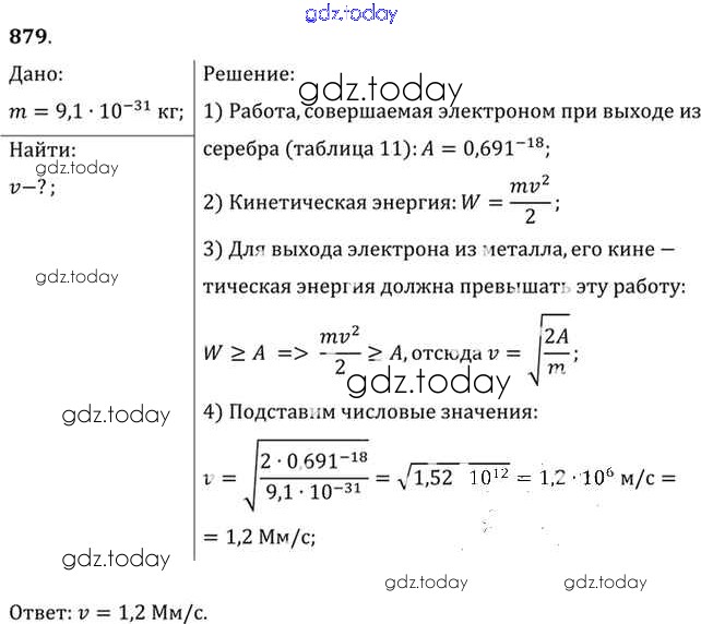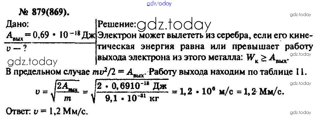 На страницах сайта gdz.today вы найдете учебный и вспомогательный материал, направленный на улучшения знаний школьной программы. ГДЗ - онлайн мир знаний Задачи 879 Задачнику по Физике для 10-11 класса Рымкевич Дрофа УМК 2013